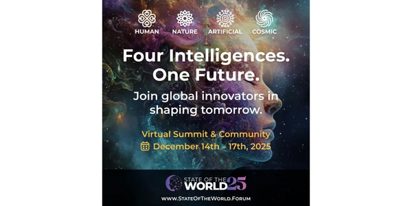 Join the virtual Summit December 14 - 17, 2025. The Forum focuses on: How should humanity refine its consciousness to creatively respond to the four most consequential truths of our time: planetary ecological collapse, turbulence at every level of human affairs, exponential growth in AI, and the reality of cosmic intelligence on Earth?